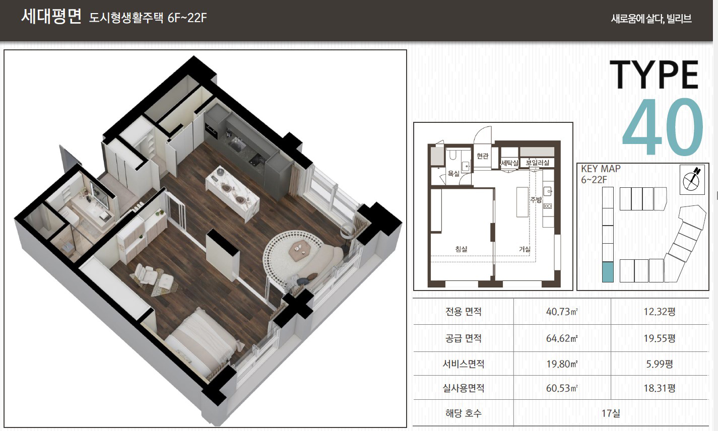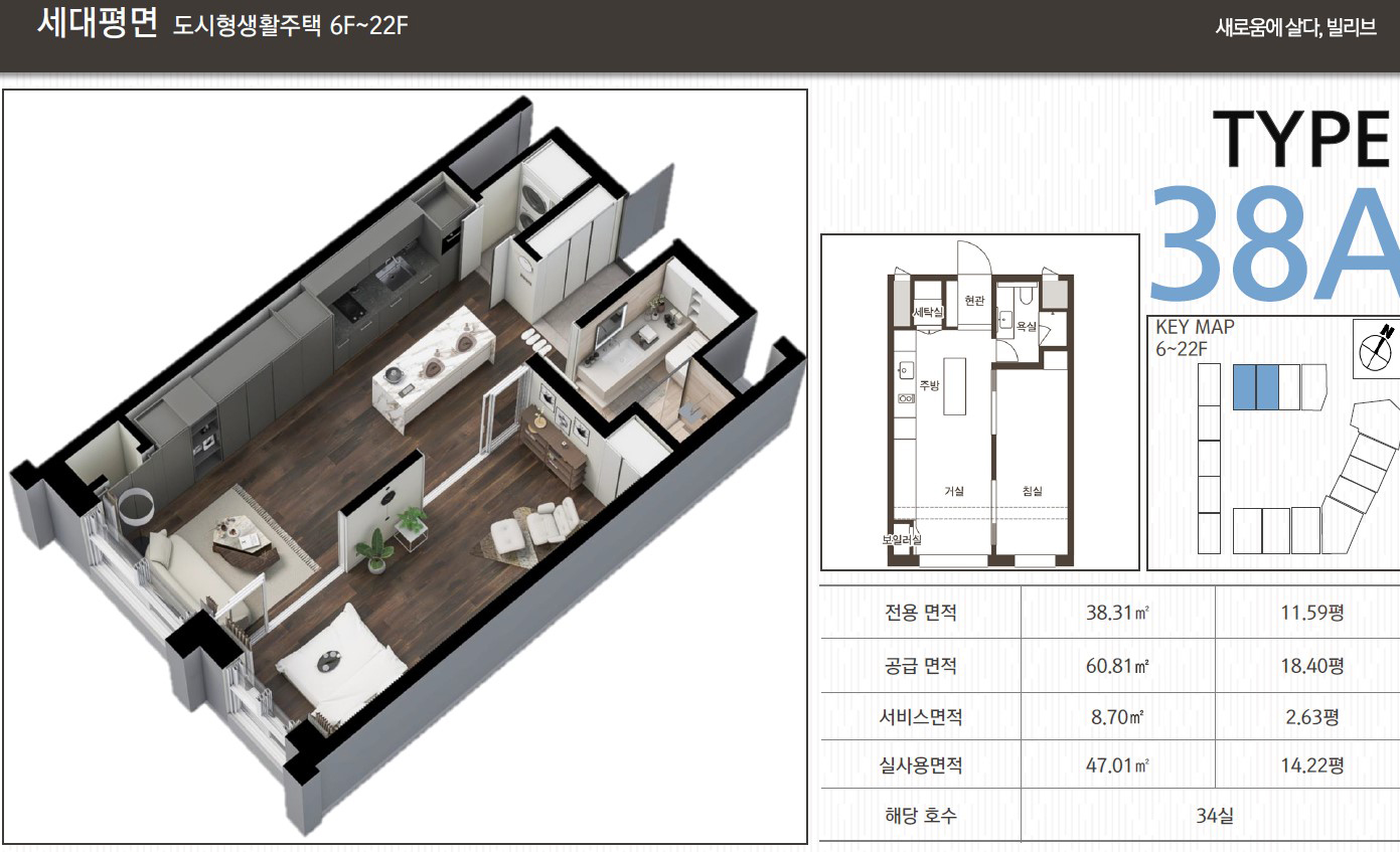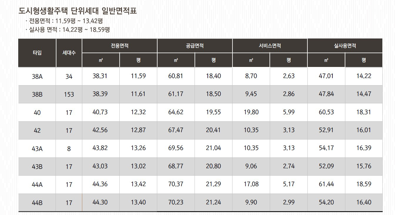 실사용면적 14평대에서 18.59평까지 투룸으로