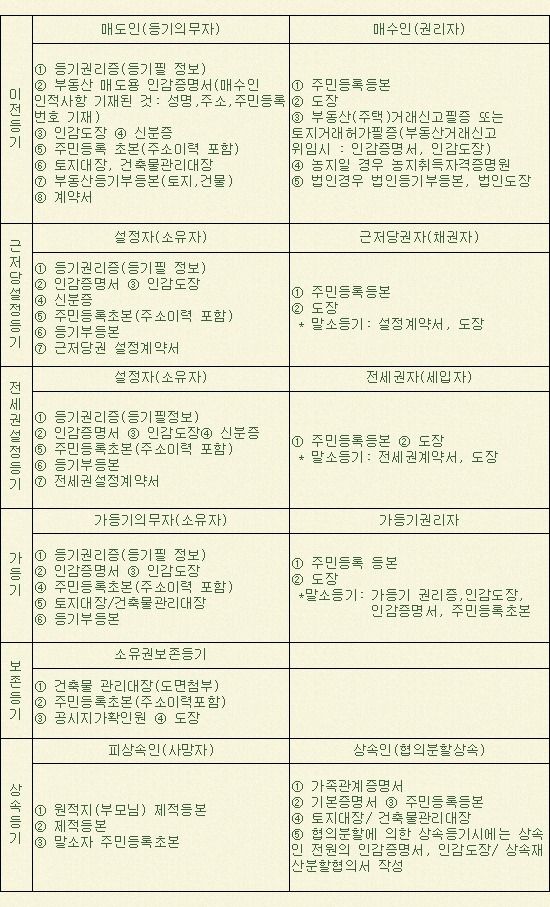 등기신청서 구비서류