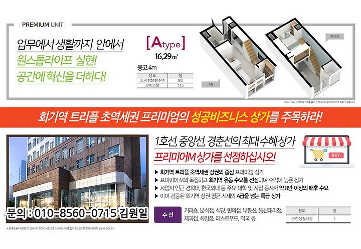 오피분양다나와 회기 프리미어M, 경희대오피스텔. 휘경동오피스텔,분양 룸 다나와 2017. 11. 24. 12:54 반응형 경희대, 한국외국어대, 서울시립대, 삼육보건대등교육 인프라가 잘 형성된트리플 역세권 회기역 2번 출구 바로앞에새로 들어서는프리미어엠 회기 오피스텔,초역세권 입지를 품고분양을 합니다,11층 195세대,1층 근린상가는 2번 출구에서 나오는수만명을 하루 종일 맞이할수 있는 매력적인 상권을 겸비합니다사업개요입지조건주변 환경평 면 도모델 하우스