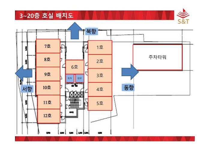 동.서.북향 3방향의 호실배치
